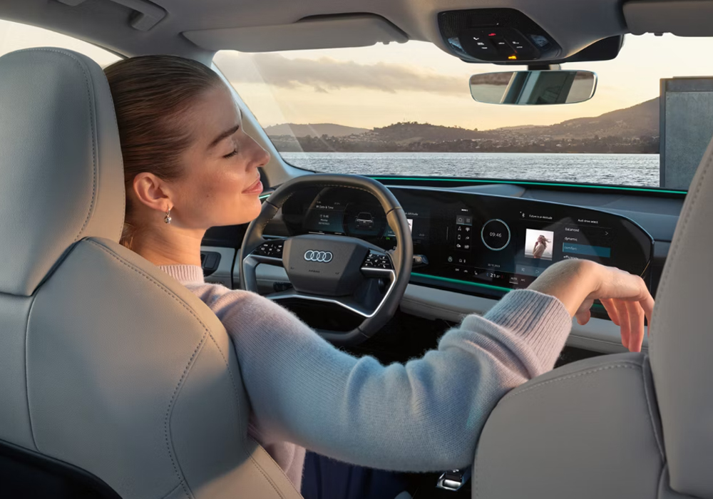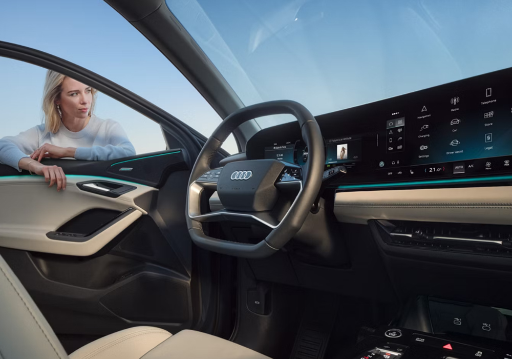 Audi Q6 e-tron에는 완전히 새로운 실내 콘셉트가 구현되어 있습니다. 고품격 소재를 사용한 구조적 설계를 통해 미래지향적인 느낌과 더불어 시각적 선명함을 선사합니다.