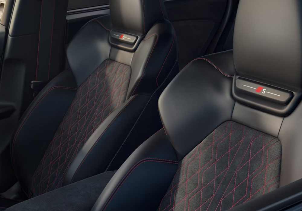 엑스프레스 레드 스티치와 다이아몬드 패턴이 돋보이는 스포츠 시트 플러스는 탁월한 지지력을 제공합니다. 계기판, 도어, 센터 암레스트에는 블랙 다이나미카 마이크로파이버가 들어가 스포티한 느낌을 더합니다.