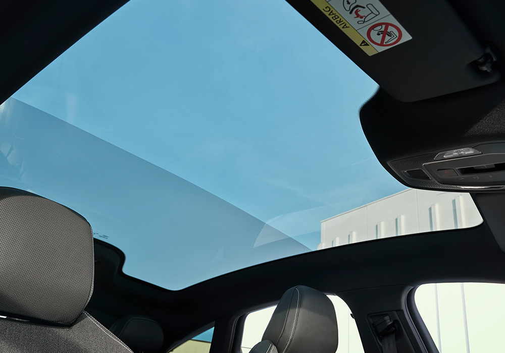 스위처블 파노라믹 루프는 구조적으로 정돈된 실내 공간을 한층 더 넓어 보이게 하며, 고급 소재의 품격을 더욱 돋보이게 합니다. 차량 루프를 거의 가득 채우는 스위처블 파노라믹 루프는 전동식으로 차광이 가능한 9개 구획으로 이루어져 있습니다.