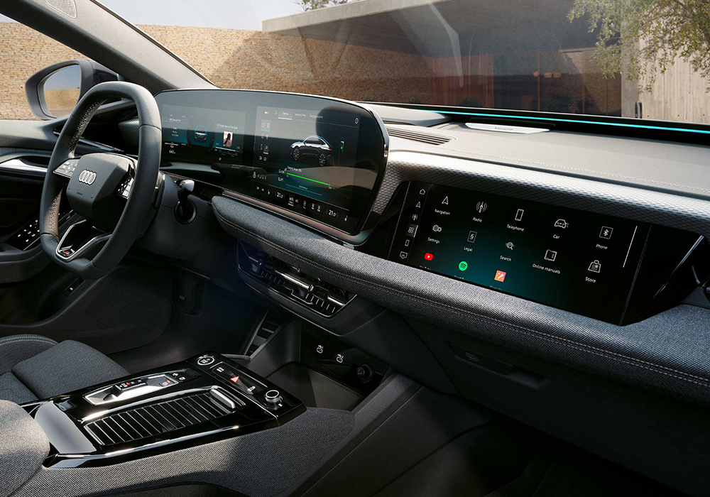 MMI 파노라믹 디스플레이, 증강현실(AR) 헤드업 디스플레이, 아우디 어시스턴트, 다이내믹 인터렉션 라이트, 헤드레스트 스피커가 장착된 B&O 3D 프리미엄 사운드 시스템 등 첨단 기능을 갖춘 새로운 디지털 실내 공간을 경험해보세요.