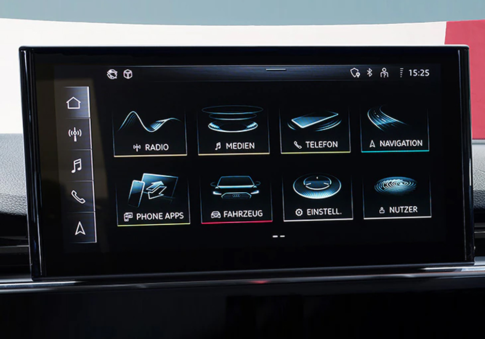 MMI 내비게이션 플러스 및 MMI 터치로 다양한 아우디 커넥트 서비스를 이용할 수 있습니다. 아우디 커넥트는 인포테인먼트, 내비게이션, 보안 및 서비스 영역에서 여러 가지 유용한 디지털 서비스를 제공합니다. 예를 들어, 실시간 교통 정보를 확인하고, 경로 주변의 유명지를 찾아보거나, 주유소 위치와 기름값을 알아볼 수 있습니다. 10.1인치 중앙 디스플레이에서 음성으로 조작할 수 있으며, 터치 기능은 청각적 피드백을 제공합니다.