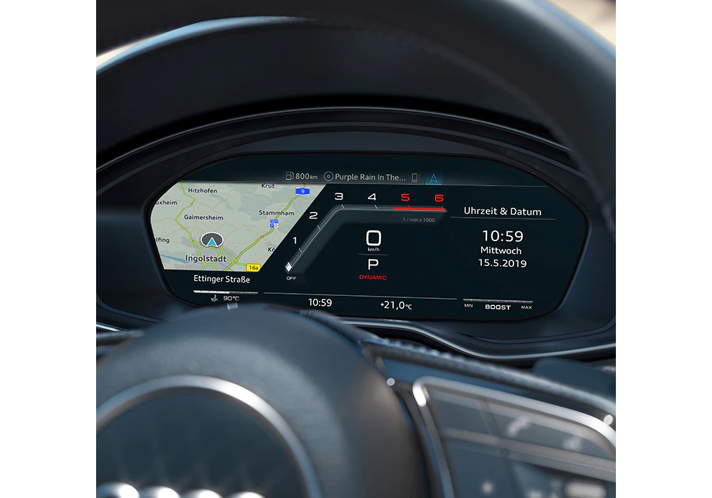 아우디 버추얼 콕핏 플러스를 통해 운전자 바로 앞에 위치한 12.3 인치 풀 HD 디스플레이에 주요 기능이 표시됩니다. 아우디 스마트폰 인터페이스는 스마트폰을 차량과 연결하여 스마트폰의 기능을 차량의 인포테인먼트 시스템을 통해 사용할 수 있게 합니다.