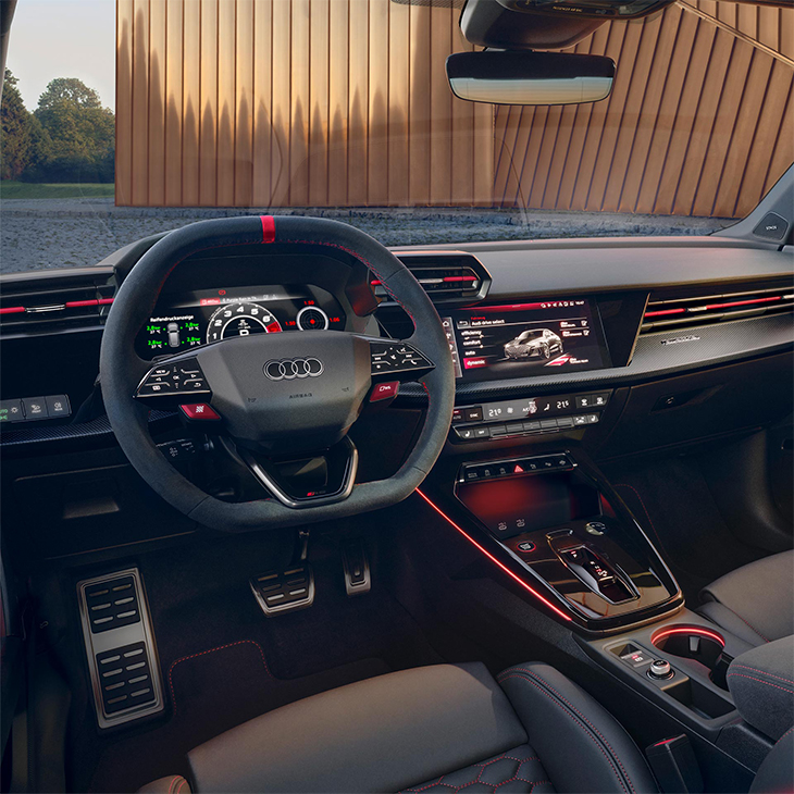 아우디 RS 3는 SONOS 3D 프리미엄 사운드 시스템을 옵션으로 주문할 수 있습니다. 15개의 고성능 스피커에 서브우퍼가 포함되어 음악을 잊을 수 없는 경험으로 만들어줍니다. 고음과 저음의 정밀한 재현력은 풍부한 베이스와 어우러져 완전한 사운드 경험을 선사합니다.