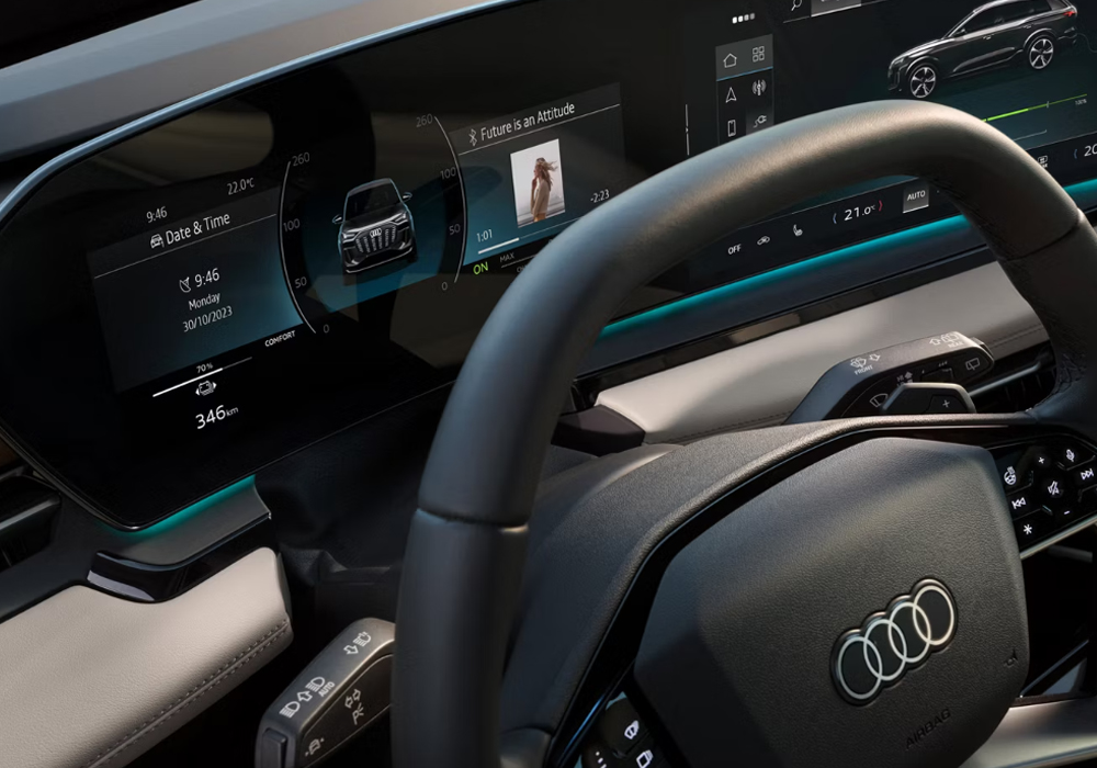 MMI 파노라믹 디스플레이, AR 헤드업 디스플레이, 운전석 도어 부분의 새로워진 컨트롤 유닛, 다이내믹 인터렉션 라이트, 헤드레스트 스피커가 포함된 B&O 3D 프리미엄 사운드 시스템 등 첨단 기능을 갖춘 새로운 디지털 실내를 경험해 보세요.