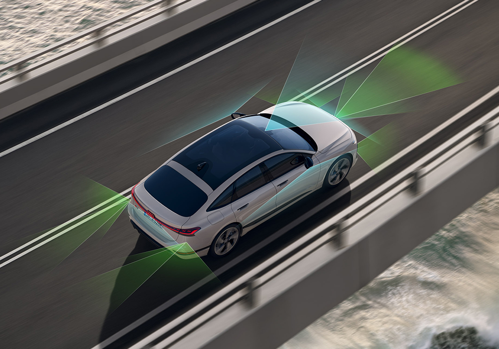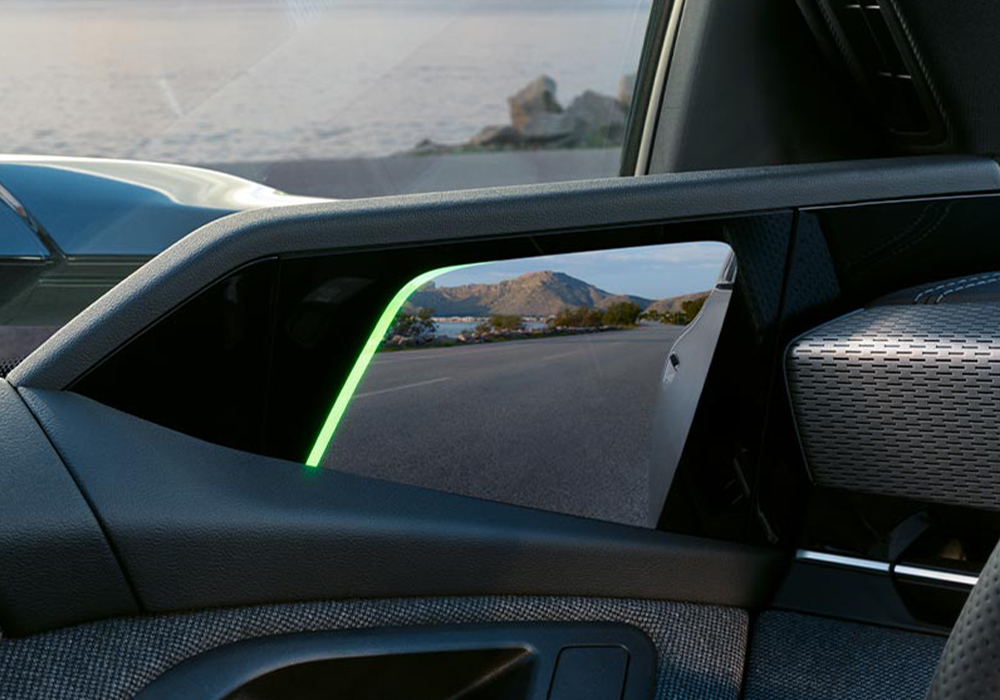옵션 사양인 버추얼 사이드 미러의 카메라는 후방 뷰를 고해상도 OLED 디스플레이에 투사하며, 인체공학적 설계 덕분에 운전자의 시야 안에 자연스럽게 표시됩니다. 또한 차량의 공기역학을 개선하며 전동식으로 접을 수 있습니다.