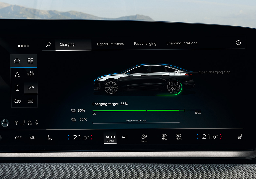 효율적인 구동 시스템과 정교한 공기역학 설계를 갖춘 더 뉴 아우디 A6 e-tron performance는 최대 469km의 주행 가능 거리와 최대 270kW(DC)의 고속 충전을 지원합니다. 커피 한 잔을 마실 시간이면 충전이 완료됩니다.