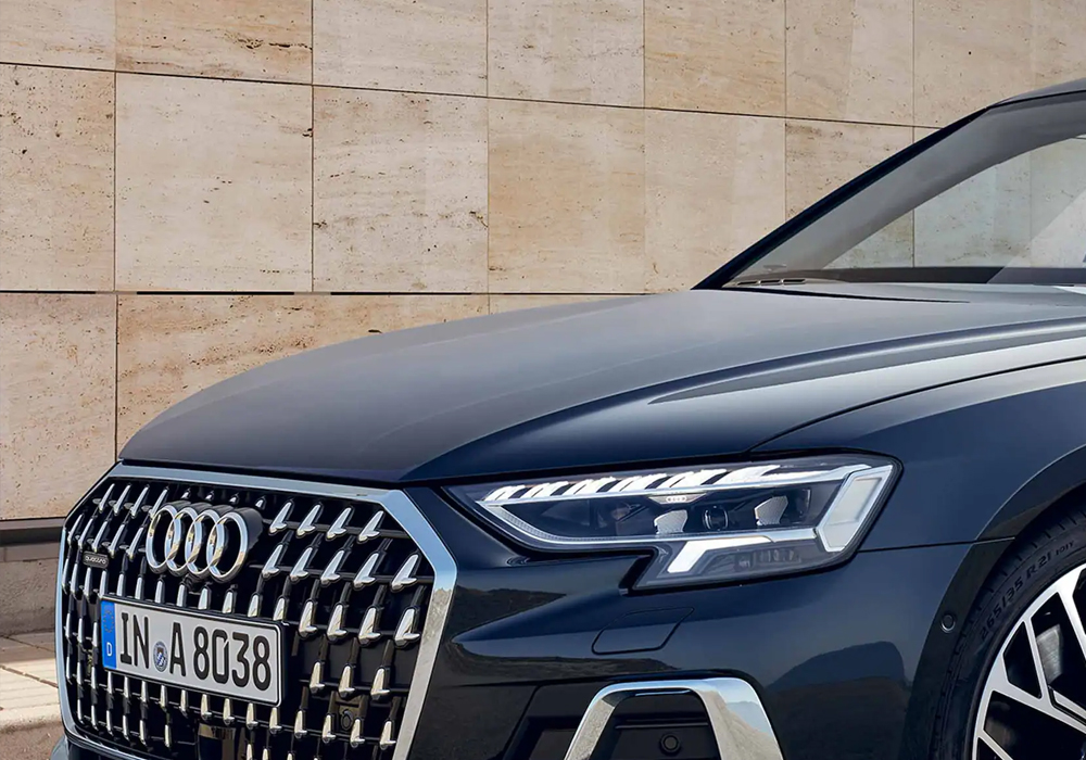 새로운 헤드라이트 디자인, 진보적인 라디에이터 보호 그릴, 개선된 흡기 그릴은 더욱 샤프해진 아우디 A8 L의 고유한 특징입니다.